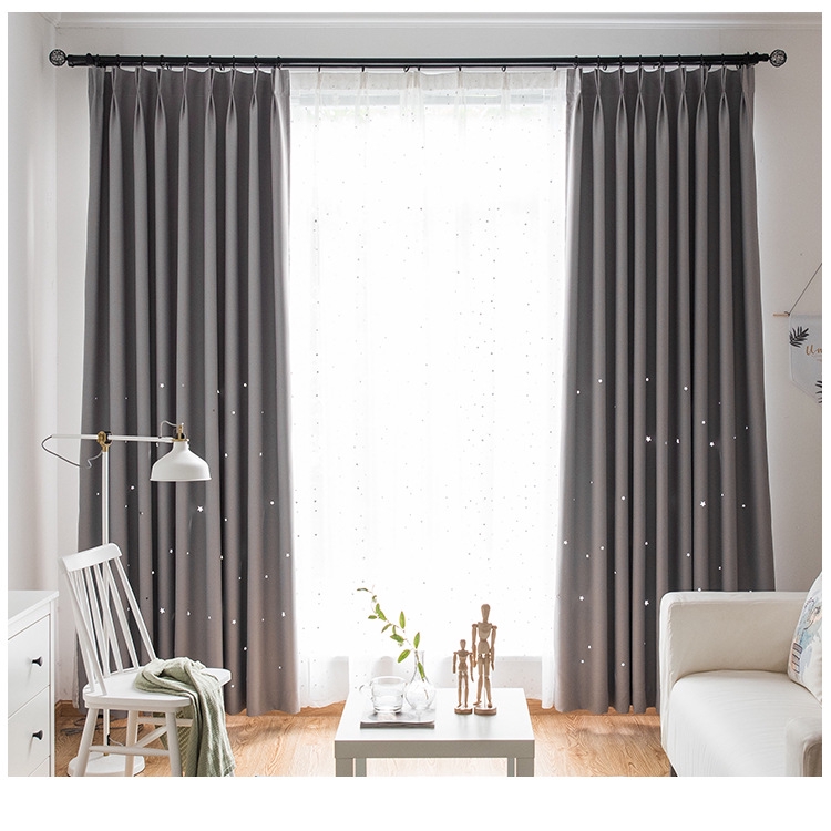 Bedroom Blackout Curtains Langsir Hollowed Star Grey Curtains For Living Room Home Decor