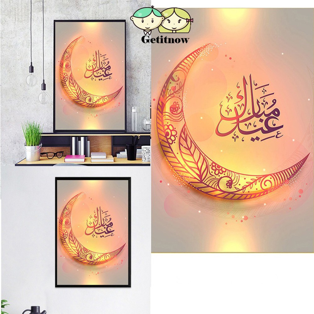 Ramadan Creative Muslim Ramadan Moon Shaped Oil Painting Ink Poster Home Decor Canvas
